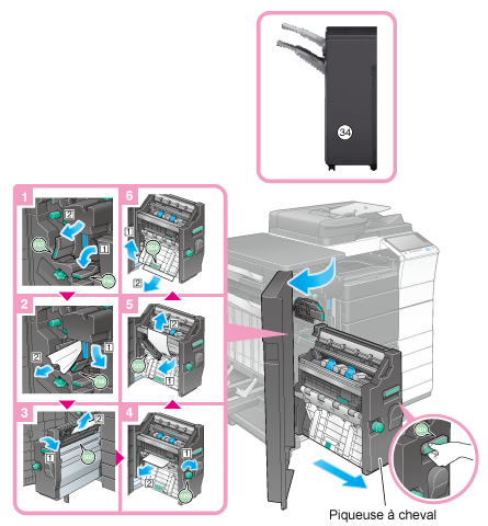 Bourrage papier dans l'unité de finition FS-537 ou FS-537 SD