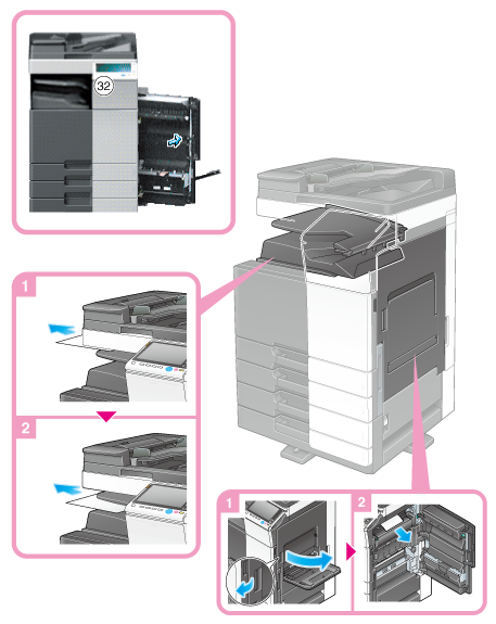 Certaines zones à l'intérieur de l'appareil sont soumises à des températures élevées susceptibles de causer des brûlures. Lors de la vérification de l'intérieur de la machine, à la recherche d'une anomalie comme un bourrage papier par exemple, ne pas toucher pas les zones (autour de l'unité de fixation, etc.) qui sont indiquées par l'étiquette d'avertissement "Caution HOT". Vous pourriez vous brûler.