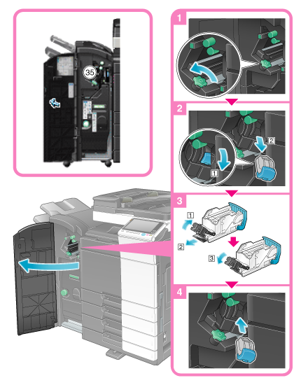 Bourrage d'agrafes dans l'unité de finition FS-536 ou FS-536 SD