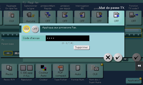 [OUI]/[OFF] | Sélectionnez [OUI] pour spécifier un Mot de passe TX. |