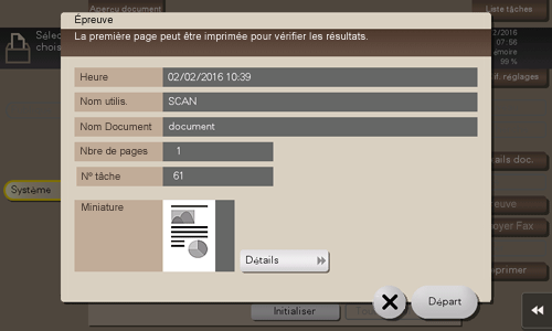 Procédure d'affichage : [Boîte utilisateur][Système][Ré-émission fichier]Sélectionner le fichier[Épreuve]