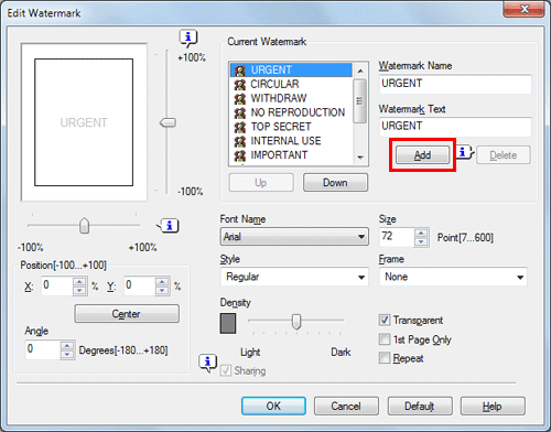 Klicken Sie auf [Hinzufüg...] und registrieren Sie die Wasserzeichendaten.