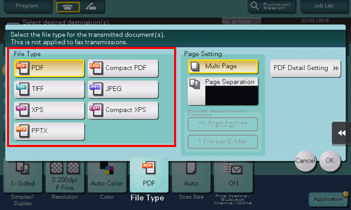 Für die Verwendung von DOCX oder XLSX als Dateityp werden der optionale Erweiterungsspeicher und i-Option LK-110 v2 benötigt.