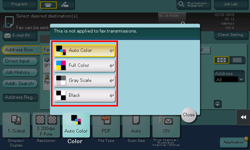 [Auto Farbe] | Die Farbe des Originals wird automatisch erkannt. Beim Scannen wird eine Anpassung an die Originaleinstellungen vorgenommen. |