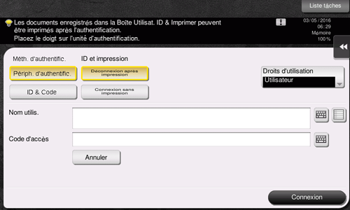 Les méthodes de connexion varient selon la configuration de l'authentification de cette machine.
