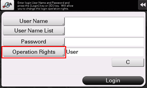 Si l'utilisateur enregistré dispose des privilèges d'administrateur ou des privilèges d'administrateur de boîtes, il peut sélectionner les privilèges d'utilisation à la connexion. Pour des détails sur la procédure de connexion, voir Ici.