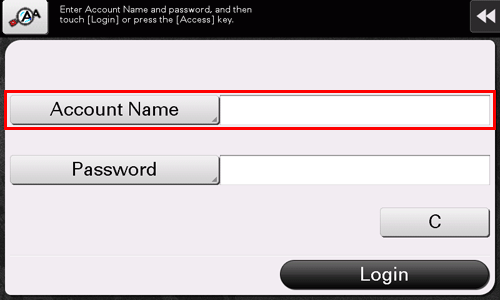 Entrez le nom de compte et le code d'accès pour effectuer l'authentification. Il se peut que le contenu de l'écran Connexion varie en fonction du réglage d'authentification de cette machine.