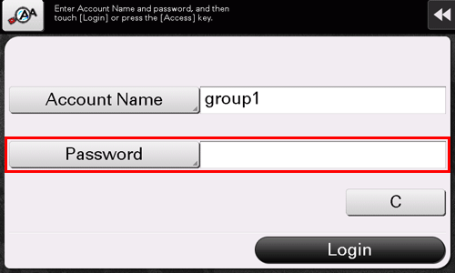 Si vous exécutez compte département en n'utilisant que le code d'accès, tapez sur [Code d'accès] ou sur sa zone de saisie, puis entrez le mot de passe.
