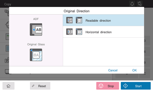 When scanning a 2-sided original, specify the original loading direction so that the vertical direction of the scanned original is set correctly.