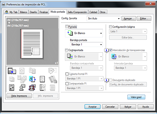 En la ficha [Modo portada], seleccione la casilla de verificación [Intercalación de transparencias].