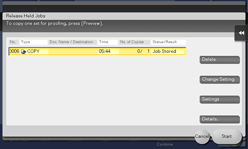 Una tarea que se ha enviado a la máquina con la [Impresión de prueba] activada puede borrarse de forma remota utilizando Web Connection a través del navegador web del ordenador.