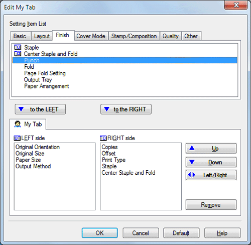 Cliquez sur [vers la GAUCHE] placer la fonction sélectionnée sur le côté gauche de [My Tab] et cliquer sur [vers la DROITE] la place sur le côté droit de [My Tab].