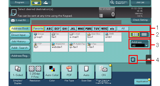 1 | Restreignez les destinations avec le texte de recherche spécifié pour la destination enregistrée. L'utilisation combinée de [Adresse] restreint davantage les destinations.