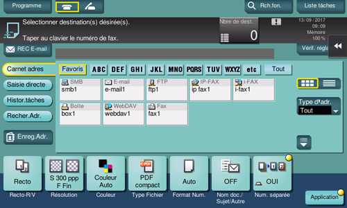 Les types de fichiers XPS, Compact XPS et PPTX sont disponibles lorsque la fonction Navigateur Web est désactivée. Lorsque la Mémoire auxiliaire est installée en option, cette fonction est toujours disponible, indépendamment de l'activation ou désactivation de la fonction Navigateur Web. Sur certains modèles la Mémoire auxiliaire fait partie de l'équipement standard. Pour des détails, voir Ici.