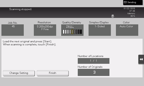 Lorsque la numérisation de tous les originaux est terminée, tapez [Finition] et appuyez sur la touche Départ.