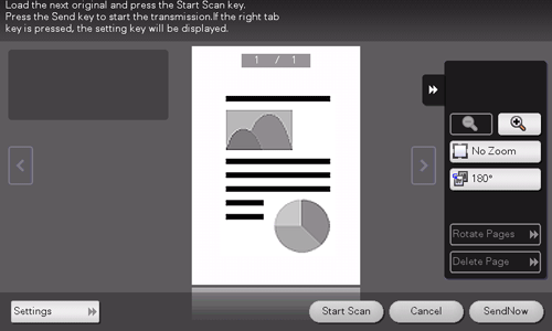 Lorsque des destinations autres que celles pour les fax sont également spécifiées, l'aperçu apparaît avec la fenêtre permettant de modifier les réglages de la fonction Numérisation sélectionnée. Pour vérifier l'aperçu du fax, appuyez sur [Fax] pour changer l'affichage.