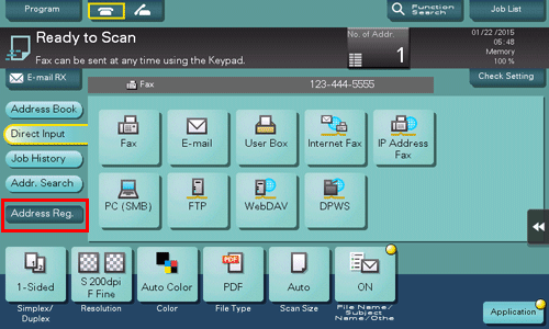 [Type d'adresse] | Le type de destination sélectionné dans Saisie directe s'affiche. |