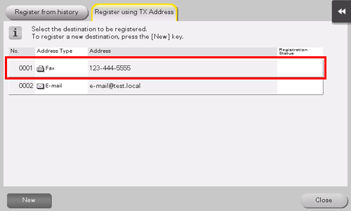 Tapez sur [Nouveau] pour enregistrer une nouvelle adresse qui n'est pas encore saisie. Pour des détails sur la procédure d'enregistrement, voir Ici.