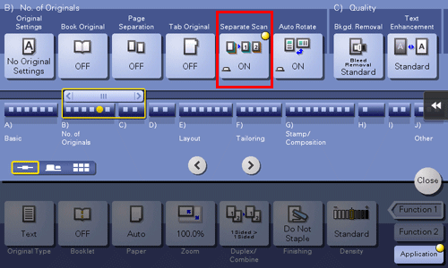 Tapez sur [Application] - [Original] - [Num. séparée] et réglez sur [OUI].