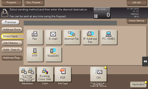 Si nécessaire, vous pouvez enregistrer la destination que vous directement saisie dans le carnet d'adresses. Pour des détails sur le mode d'enregistrement, voir Ici.