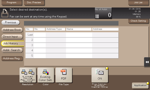 Tapez sur [Histor.tâches], puis sélectionnez une destination depuis l'historique des numérisations ou des fax.
