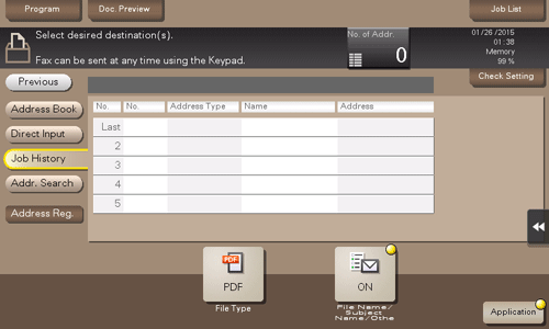 Tapez sur [Histor. tâches], puis sélectionnez une destination depuis l'historique des numérisations ou des tâches archivées.