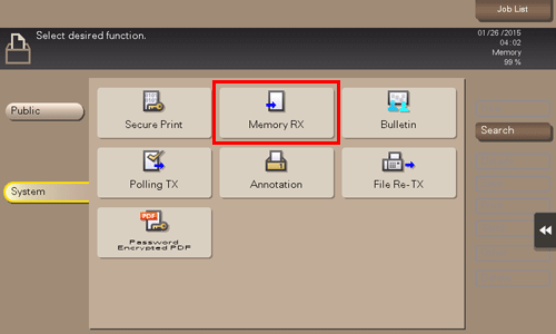 Tapez sur [Système] - [Réception mémoire].