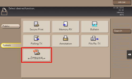 Tapez sur [Système] - [PDF Cryptés MdPass].
