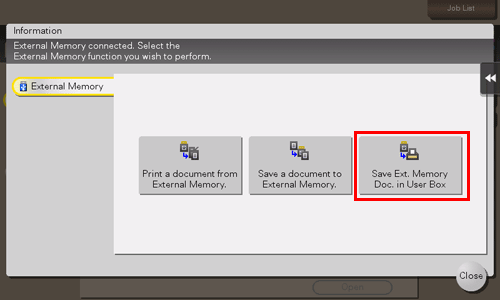 Tapez sur [Enregistr. Doc. Mém. Ext. dans Boîte utili.]