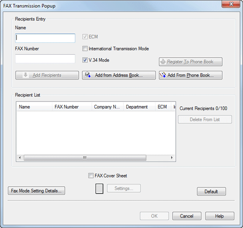 Vérifiez que le pilote de fax de cette machine est sélectionné dans [Nom de l'imprimante] (ou [Sélectionnez une imprimante]).