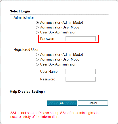 Saisissez le mot de passe de l'administrateur, puis cliquez sur [OK].