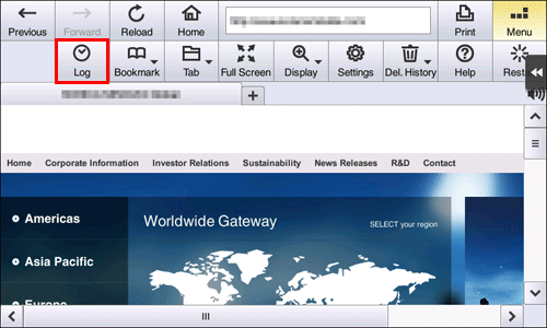 Si vous tapez sur [Menu] - [Journal] sur la barre d'outils, la liste des pages affichées jusqu'au moment présent apparaît.