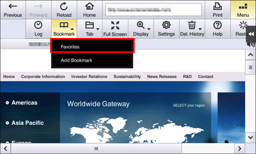 Si vous tapez sur [Menu] - [Signet] - [Favoris] sur la barre d'outils, la liste des favoris enregistrés sur la machine s'affiche.