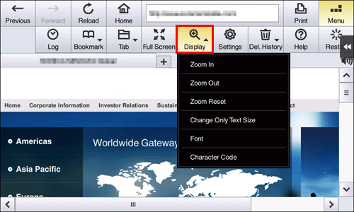 Sélectionnez [Menu] - [Affichage] sur la barre d'outils pour agrandir ou réduire la taille une page ou modifier le code caractère.