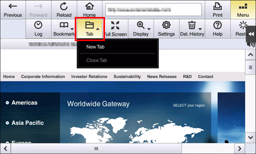 Sélectionnez [Menu] - [Onglet] sur la barre d'outils pour utiliser les onglets.
