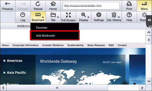 Affichez une page à ajouter aux favoris, puis tapez sur [Menu] - [Signet] - [Ajouter Signet].
