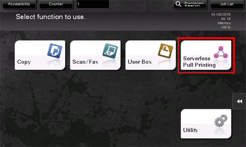 Tapez sur [Serverless Pull Printing] dans le menu principal.