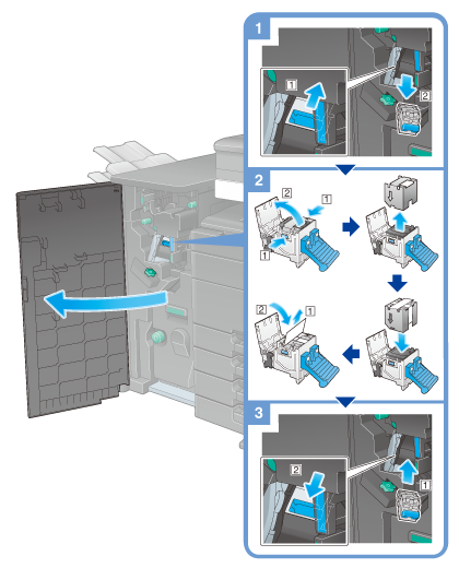Veillez à bien remplacer la Cartouche d'agrafes après que le message correspond est apparu. Si une Cartouche d'agrafes est retirée avant que le message correspondant ne s'affiche, une panne risque de se produire.