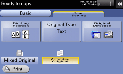 1. Tapez sur [Param. numéris.] - [Original plié en Z].