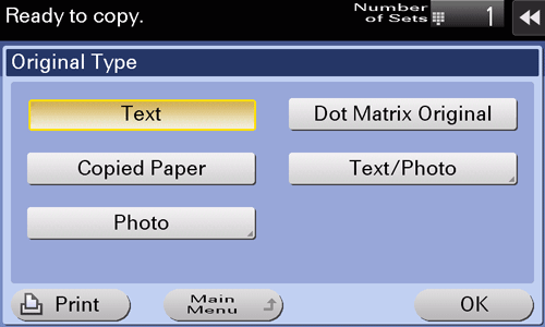 Sélectionnez les réglages appropriés pour l'original particulier, et produisez une copie en utilisant le niveau de qualité d'image optimal.