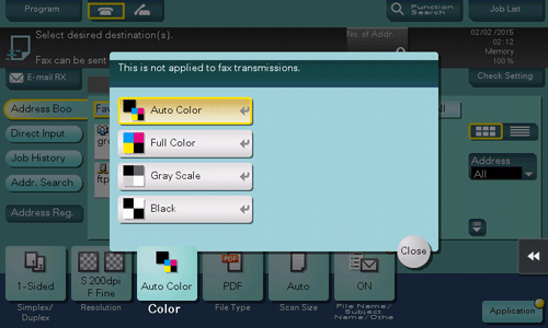 [Couleur Auto] | Numérisez en sélectionnant automatiquement soit [Couleurs] ou [Echelle de gris] en fonction de la couleur de l'original. |