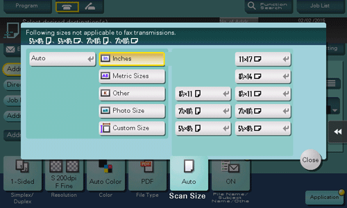 [Autre] | Sélectionnez cette option pour numériser une carte postale (4 6, ou Carte A6) ou un original autre qu'un original en pouces ou en cm. [Autre] vous permet de sélectionnez chaque format standard. |