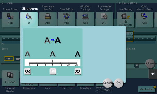 [Texte] | Tapez sur ce bouton pour numériser un original, principalement composé de texte, avec un niveau de qualité d'image optimal. Cette fonction accentue les bords de chaque caractère pour créer des images faciles à lire. |