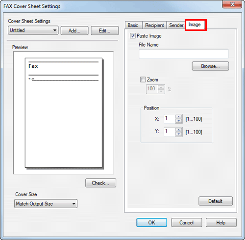 Pour ajouter une image, spécifiez un fichier d'image sur l'onglet [Image].