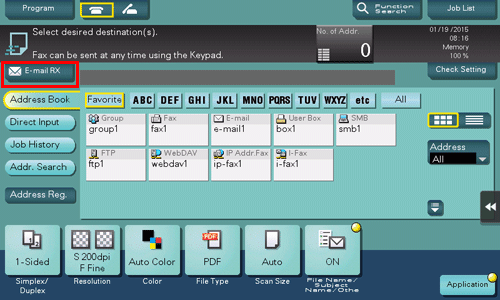 La machine demande automatiquement l'état de réception des fax au serveur de messagerie à intervalle prédéfini (par défaut : 15 minutes). Si un fax a bien été reçu, la machine reçoit et imprime le message.
