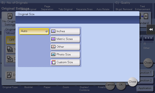Si le format de l'original n'est pas détecté correctement, sélectionnez une touche qui correspond au format de l'original à numériser. Si la machine ne peut pas détecter le format de certains originaux ou photos dont le format est irrégulier, spécifiez manuellement le format.