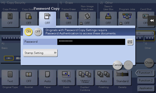 [Code d'accès] | Entrez le mot de passe pour interdire la copie. | |