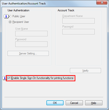 Cochez la case [Activer la fonction Authentification unique pour les fonctions d'impression], et cliquez sur [OK].