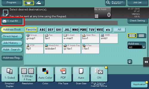 Tapez sur [Réception e-mail] pour interroger le serveur de messagerie. S'il y a un e-mail entrant, recevez-le et imprimez-en le fichier joint.