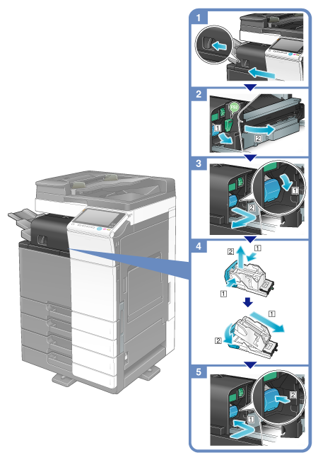 Be sure to replace the Staple Cartridge after the relevant message has appeared. If a Staple Cartridge is removed before the relevant message appears, it may result in a failure.